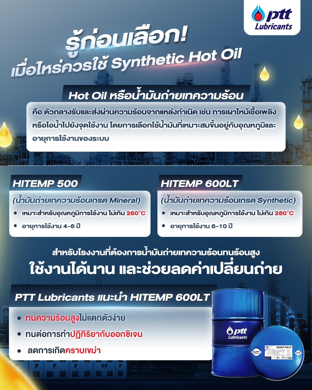 PTT Lubricants ขอแนะนำ HITEMP 600LT น้ำมันทนความร้อนสูง