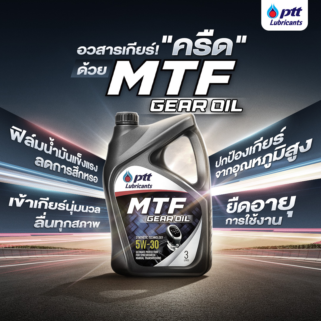 If you are looking for a high-quality synthetic technology automotive gear oil specifically designed for manual transmission systems with synchromesh components that is compatible with passenger cars, pickup trucks, and multi-purpose gear sets requiring API GL-4 standard gear oil, remember to choose MTF 5W-30! The product is available now at FIT Auto and PTT Stations or PTT Lubricants for authorized retailers near you.